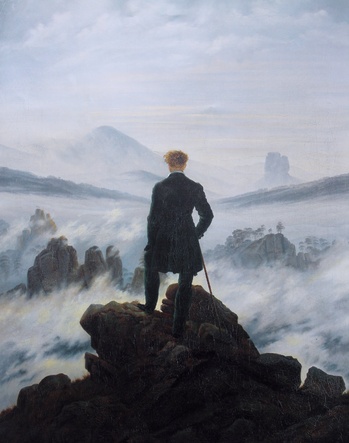 Alman Romantizmi denildiğinde akla gelen ilk görsel, hiç şüphesiz Caspar David Friedrich’in 1818 yılında tamamladığı Bulutların Üzerindeki Yolcu (Der Wanderer über dem Nebelmeer) isimli tablosudur. Bu çalışma, sadece bir manzara resmi olmanın ötesine geçerek insanın doğa karşısındaki konumunu, yalnızlığını ve sonsuzluk arayışını simgeler. Friedrich, bu eseriyle izleyiciyi fiziksel bir dünyanın ötesine, ruhsal bir yolculuğa davet eder.