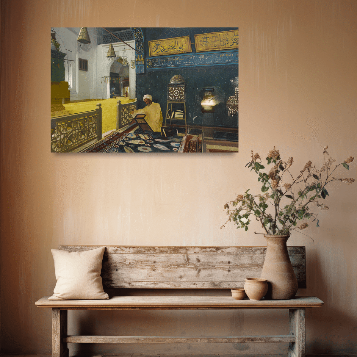 Dini motifli duvar sanatını dekorasyonda kullanırken, eseri odanın az eşya barındıran ve odak noktası olmaya uygun duvarına asarsınız. Tablonun çevresinde dikkat dağıtıcı karmaşık objeler kullanmaktan kaçınmanız, eserin manevi ağırlığını ve görsel netliğini doğrudan korur. Eserin asılma yüksekliğini izleyicinin tam göz hizasında tutmanız, esere duyulan saygıyı mimari ve estetik bir dille ifade eder.