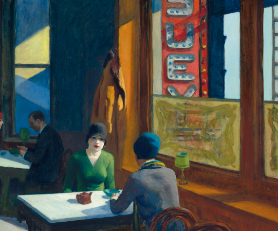 Chop Suey, bir Çin restoranında karşılıklı oturan iki kadının dinamiğini konu alır. Tablodaki kadınlar bir sohbetin parçası gibi görünseler de, yüz ifadeleri donuktur ve göz temasından kaçınırlar. Pencereden içeri sızan keskin güneş ışığı, figürlerin yüzlerini ve masayı dramatik bir açıyla aydınlatır.