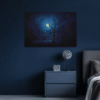 Kırmızı ayın atmosferiyle çevrili bu tasarım, Ay figürlü modern tablolar arasında doğayla ruhun buluştuğu noktayı temsil eder. Ay ışığı altında şekillenen figür, doğanın gizemine estetik bir kapı aralar.