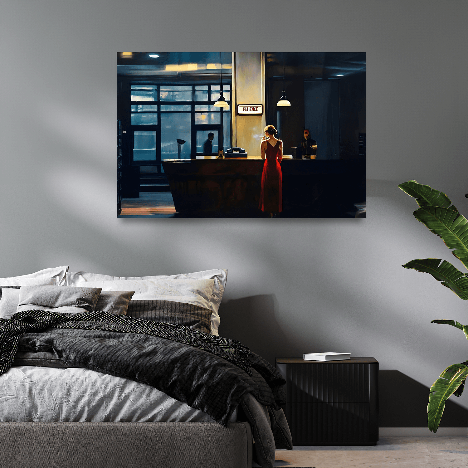 Bu eser, yatak odası gibi kişisel alanlarda huzuru ve içe dönüşü destekleyen yapısıyla yatak odası dekorasyonuna uygun tablolar arasında öne çıkar.