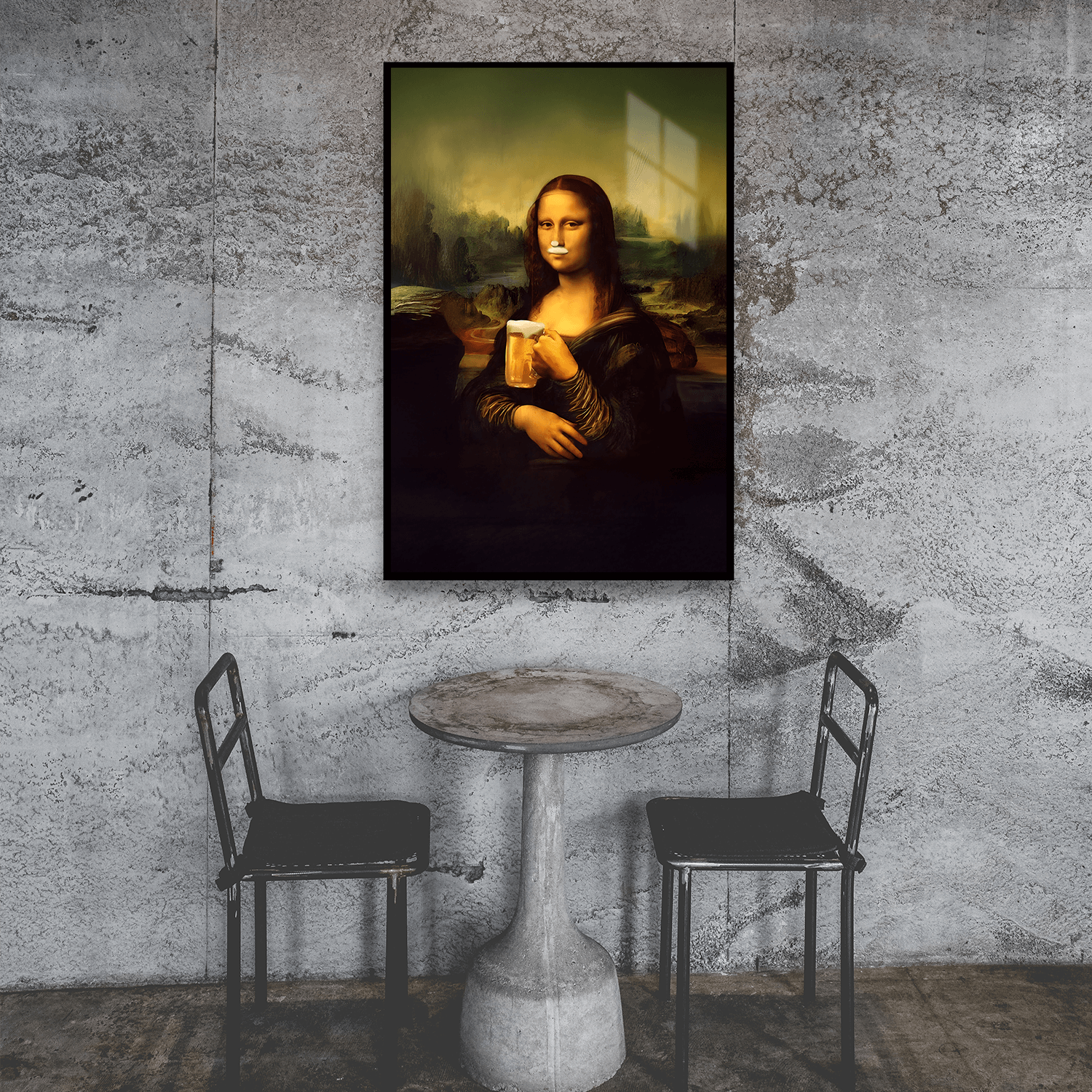 Kadehiyle ya da kupasıyla bu Lisa, bar dekorasyonu için seçilmiş tablolar arasında ortamın enerjisini artıran, müşterilerin ilgisini çeken eğlenceli bir seçimdir. Aynı zamanda kafelerde sıcak ve özgün bir atmosfer yaratır.