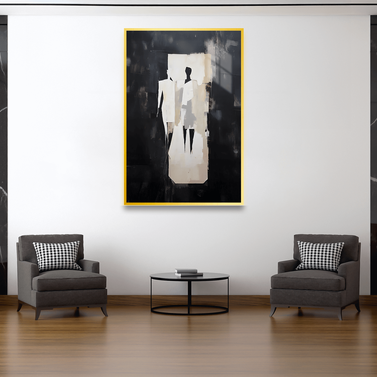 Bu eser, salon tablosu olarak kullanıldığında bulunduğu mekana modern bir karakter kazandırır. İki farklı figür veya form, bir arada uyum içinde var olurken aynı zamanda bireyselliği korur. Bu, izleyicinin farklı yorumlar yapmasına olanak tanır ve her gözlemde yeni bir anlam katmanı açığa çıkar. Ofis tablosu olarak tercih edildiğinde, takım çalışmasının ve bireysel katkıların önemini yansıtır. İş ortamında motivasyon kaynağı olurken, profesyonel bir atmosfer yaratır. Yatak odası tablosu olarak kullanıldığında ise, ilişkilerin dengesi ve bireysel alanın önemi üzerine düşünmenize olanak tanır.