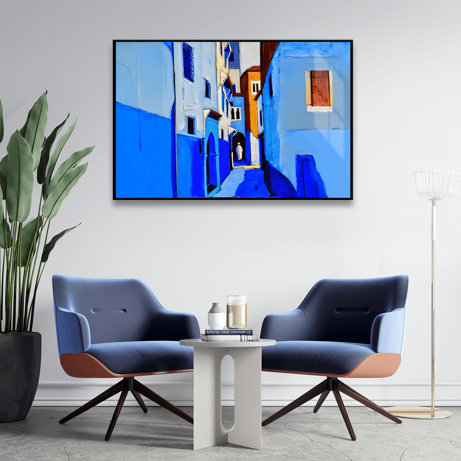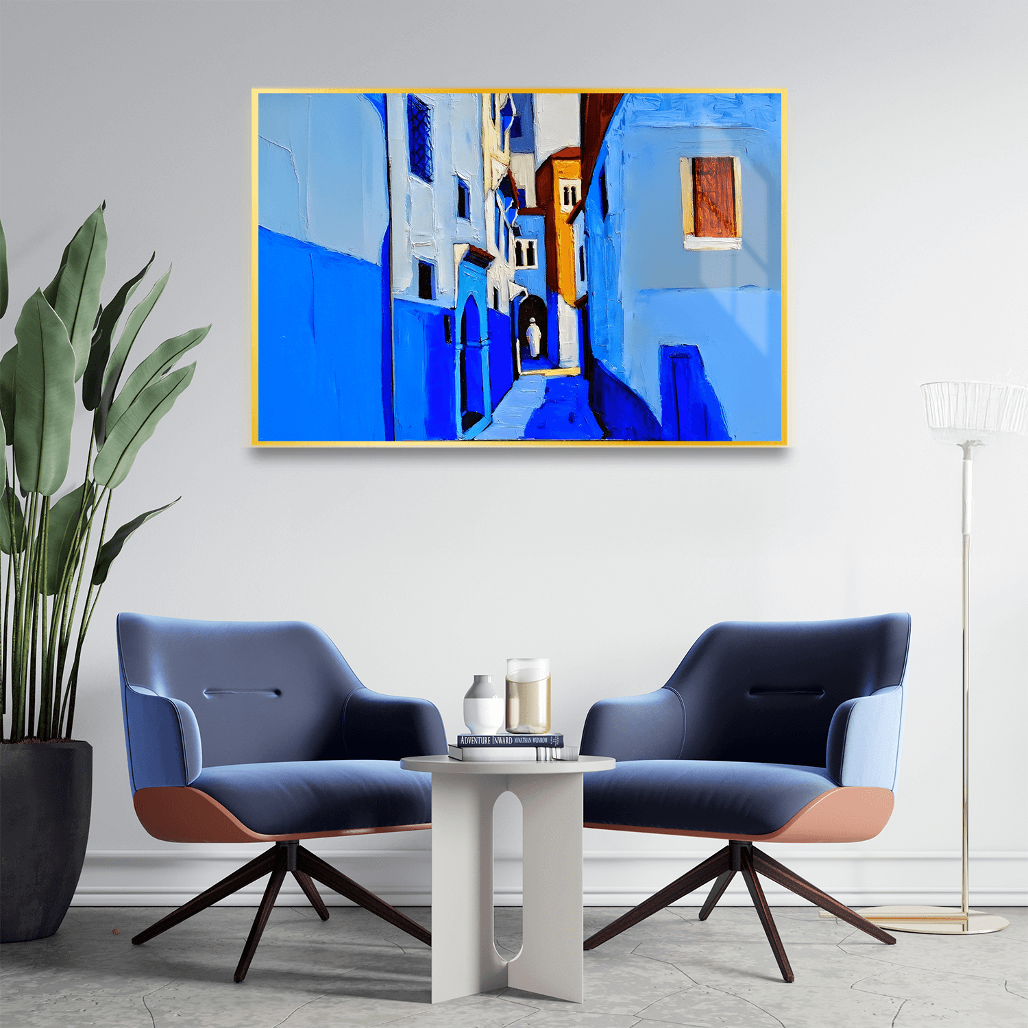 Parlak cam yüzey, tablonun renk bloklarını ve doku izlerini berrak biçimde ortaya çıkararak eseri cam yüzeyli modern tablolar kategorisinde güçlü bir görsel ifade haline getirir.