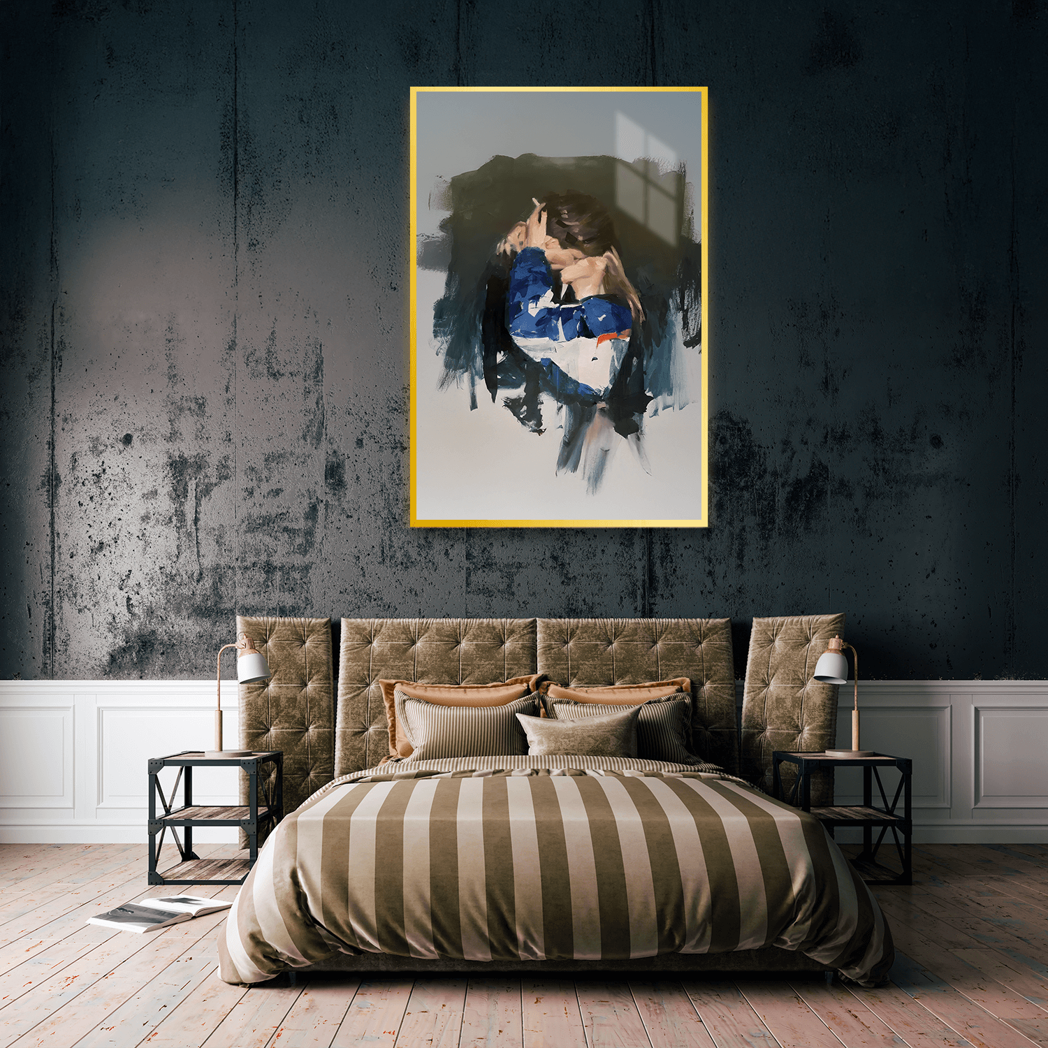 Sanatsal figür kullanımıyla dikkat çeken bu tablo, salon için sevgi temalı tablolar arasında hem şık hem anlamlı bir odak noktası oluşturur.