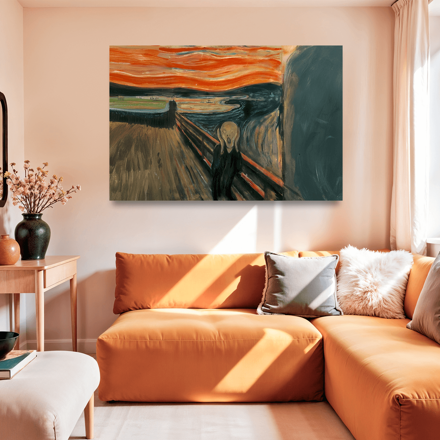 “Çığlığın İçindeki Sessizlik”, duvarlarınızı sadece estetik değil, aynı zamanda düşünsel bir derinlik ile buluşturarak duvar dekorasyonu için duygusal tablolar arasında öne çıkan bir seçenek sunuyor.