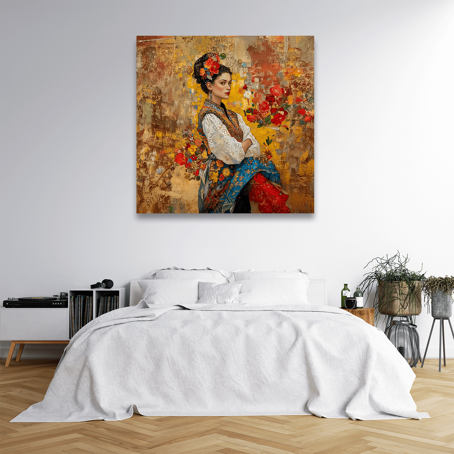 Yüksek kaliteli malzemelerle üretilen bu eser, dayanıklı kanvas tablolar koleksiyonunda zamansız bir seçenek sunar. Etnik ve geleneksel sanatı modern iç mekanlara taşır.