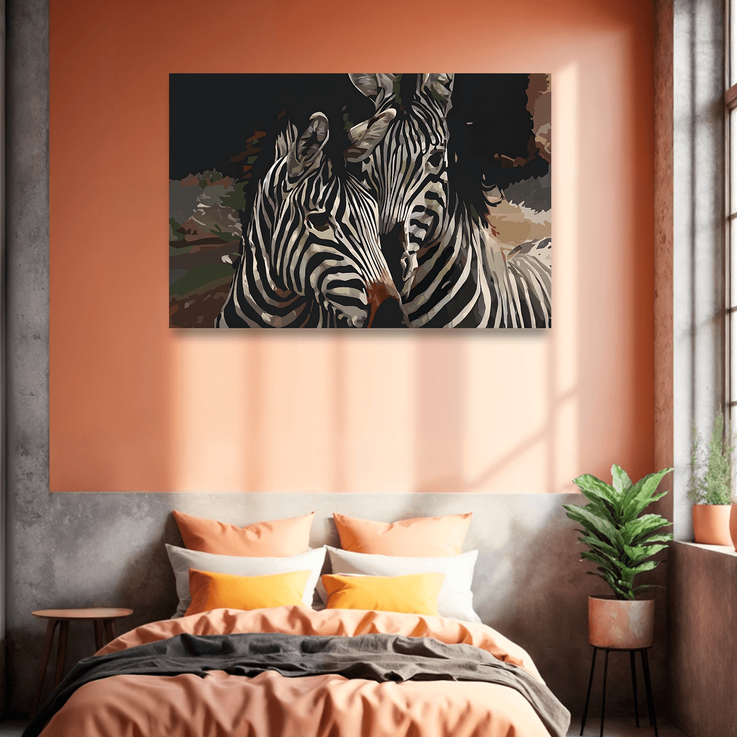 Hayvan tabloları koleksiyonunda yer alan bu eser, zebraların gizemli doğasını ve vahşi güzelliğini evinize taşıyor.
