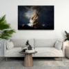 Salon dekorasyonunda estetik ve derin bir sanat anlayışına sahip olmak isteyenler için bu tablo, modern salon tabloları koleksiyonunda öne çıkıyor. Geniş duvarlarda sofistike bir odak noktası oluşturarak mekana karakter katıyor.
