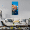 Cam tabloyu çalışma masamın arkasına astım. Görselin simetrisi ve renk dağılımı dikkat dağıtmadan ilham verici bir alan oluşturdu.