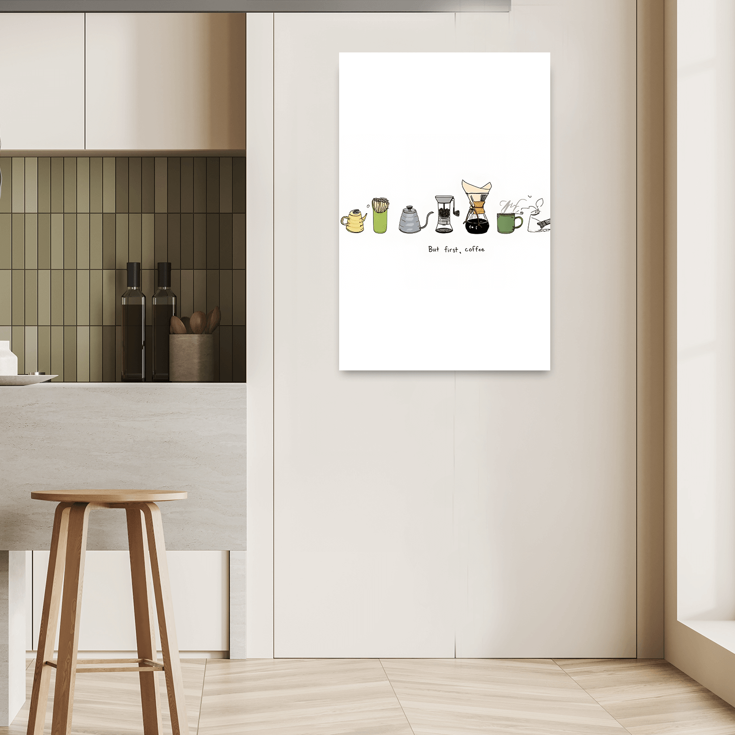 Kahvenin o tanıdık sıcaklığıyla şekillenen bu tasarım, kahve temalı modern tablolar arasında sabah saatlerine eşlik edecek sade ve anlamlı bir tercih sunar.