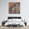 Figürün zamanın içinden süzülen duruşu, tabloyu salon dekorasyonuna uygun nostaljik temalı tablolar arasında vintage bir karakterle öne çıkarır.