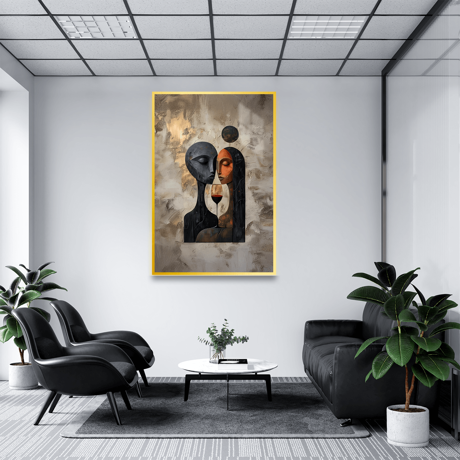 Bu tablo, ofis ortamına hem sanatsal bir şıklık hem de metaforik bir derinlik katmak isteyenler için ofis dekorasyonu için içsel temalı modern tablolar kategorisinde zarif bir tercih olur.