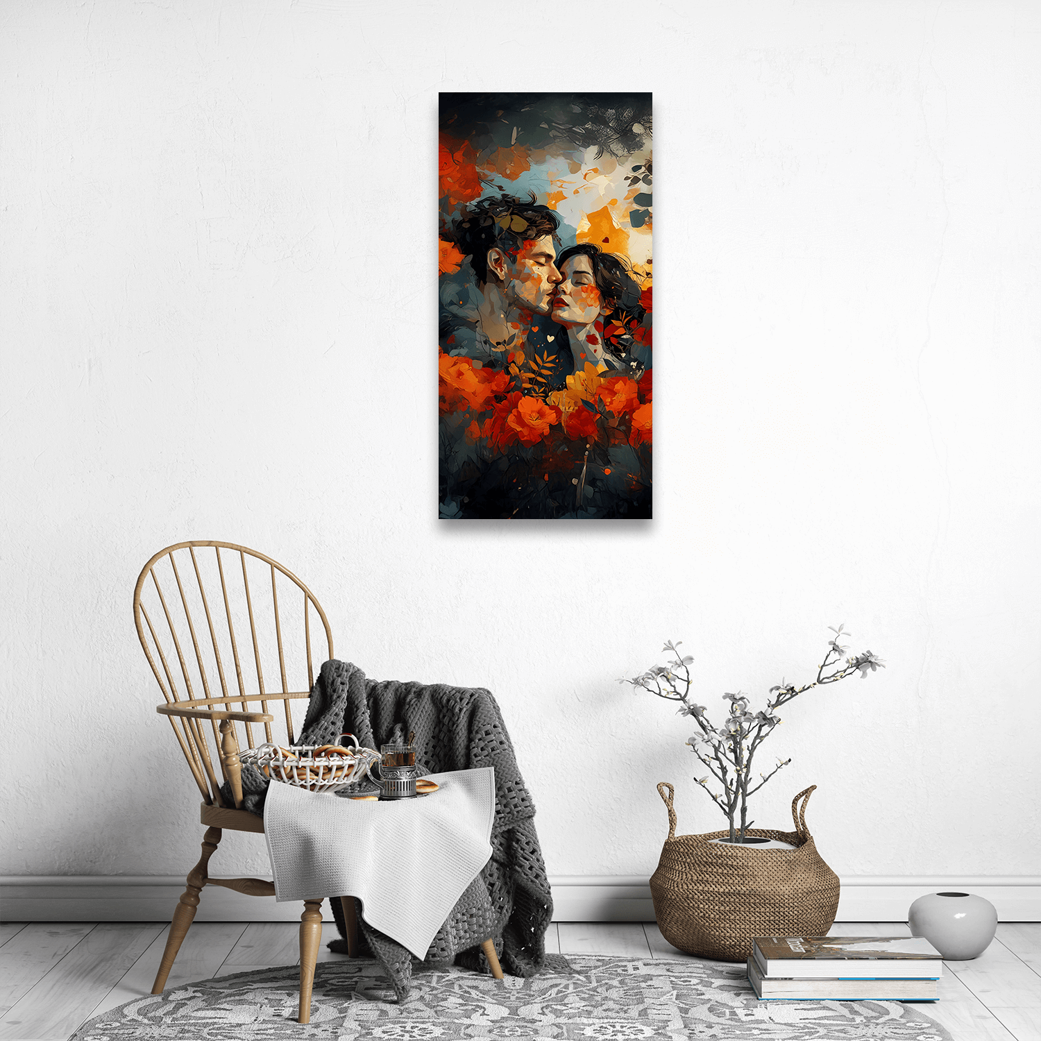 “Kalp Atışında Buluşmak”, iki kalbin duygusal uyumunu zarif bir soyutlukla sunarak anlatım temalı aşk tabloları kategorisinde romantik bir bağın estetik yorumunu temsil eder.