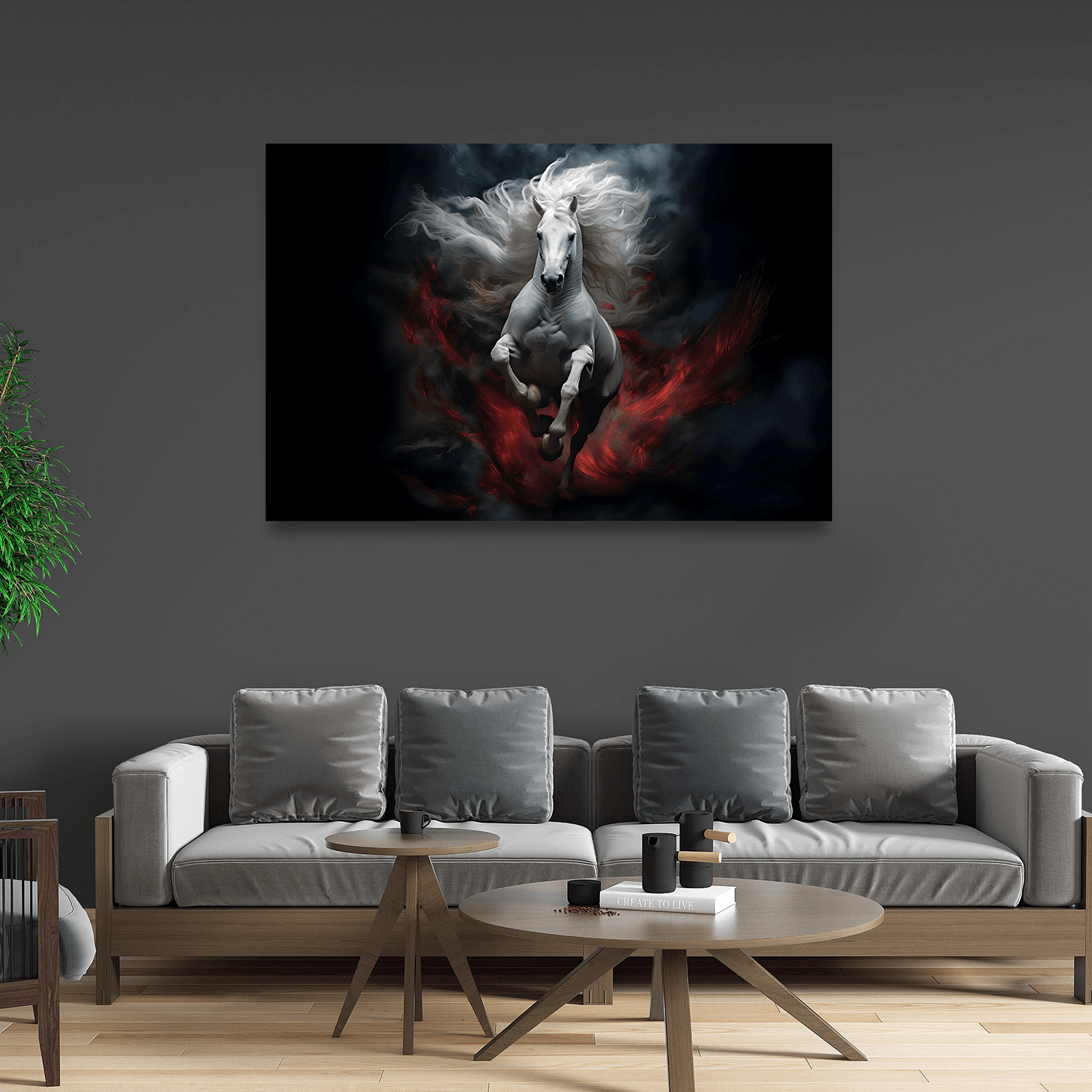 “Ateşin Gölgesi”, güçlü bir atın karanlık siluetini alev tonlarıyla buluşturan etkileyici bir tasarıma sahip. Bu eser, hayvan figürlü dekoratif tablolar koleksiyonunda doğanın enerjisini duvarlarınıza taşıyor.