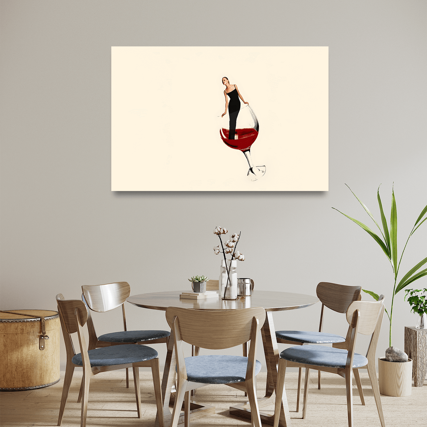 Parlak cam yüzey, kırmızının yoğun ve çekici enerjisini figürle buluşturarak tabloyu cam yüzeyli tutku ve güç temalı anlamlı tablolar arasında göz kamaştırıcı bir sanat eseri hâline getiriyor.