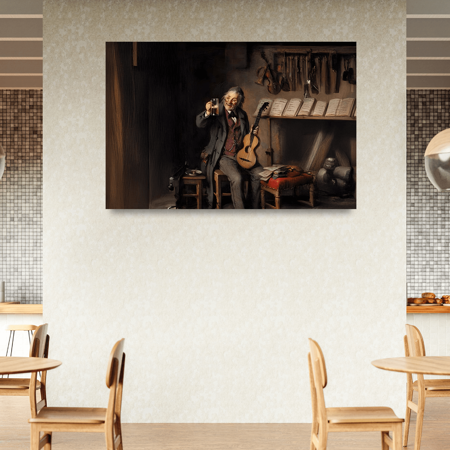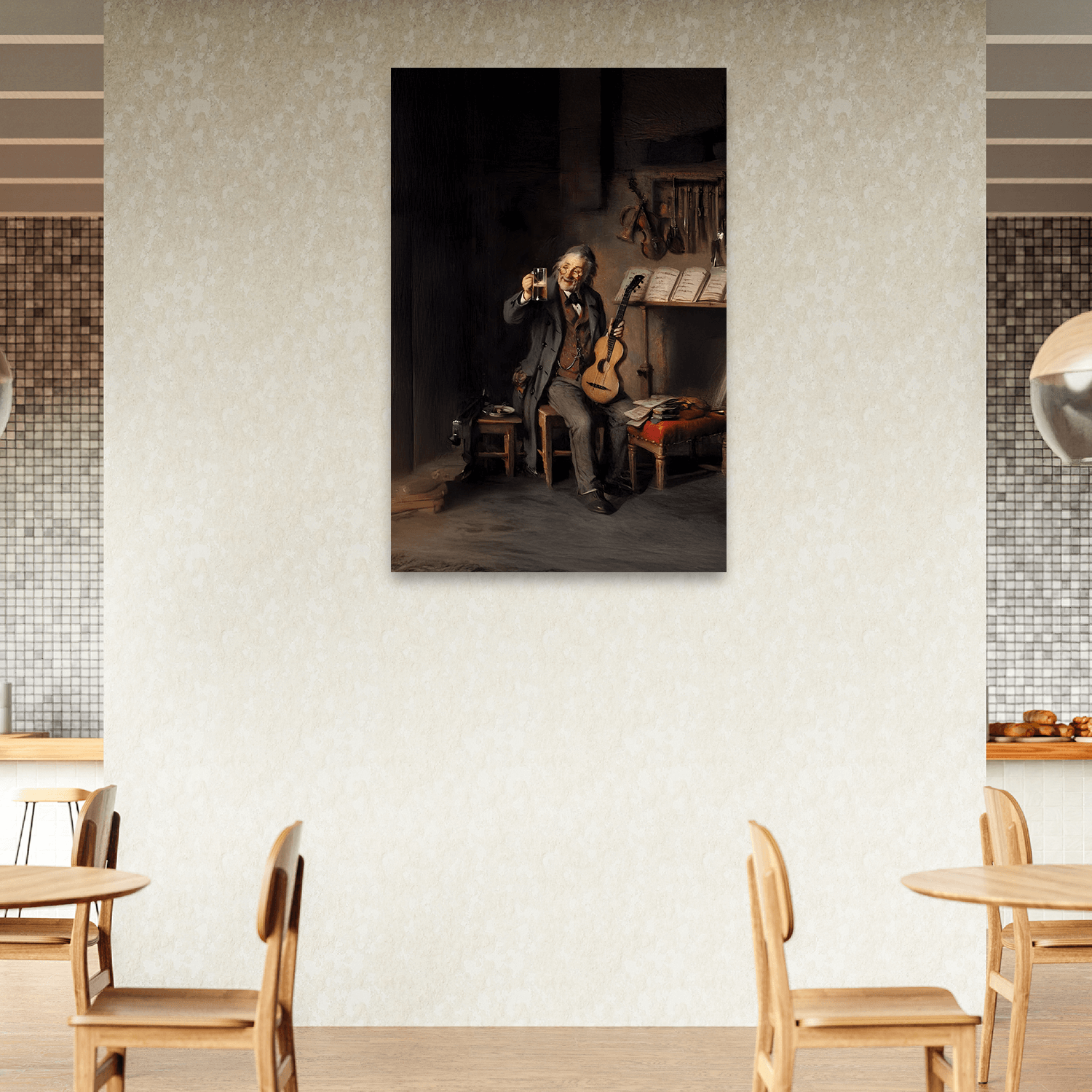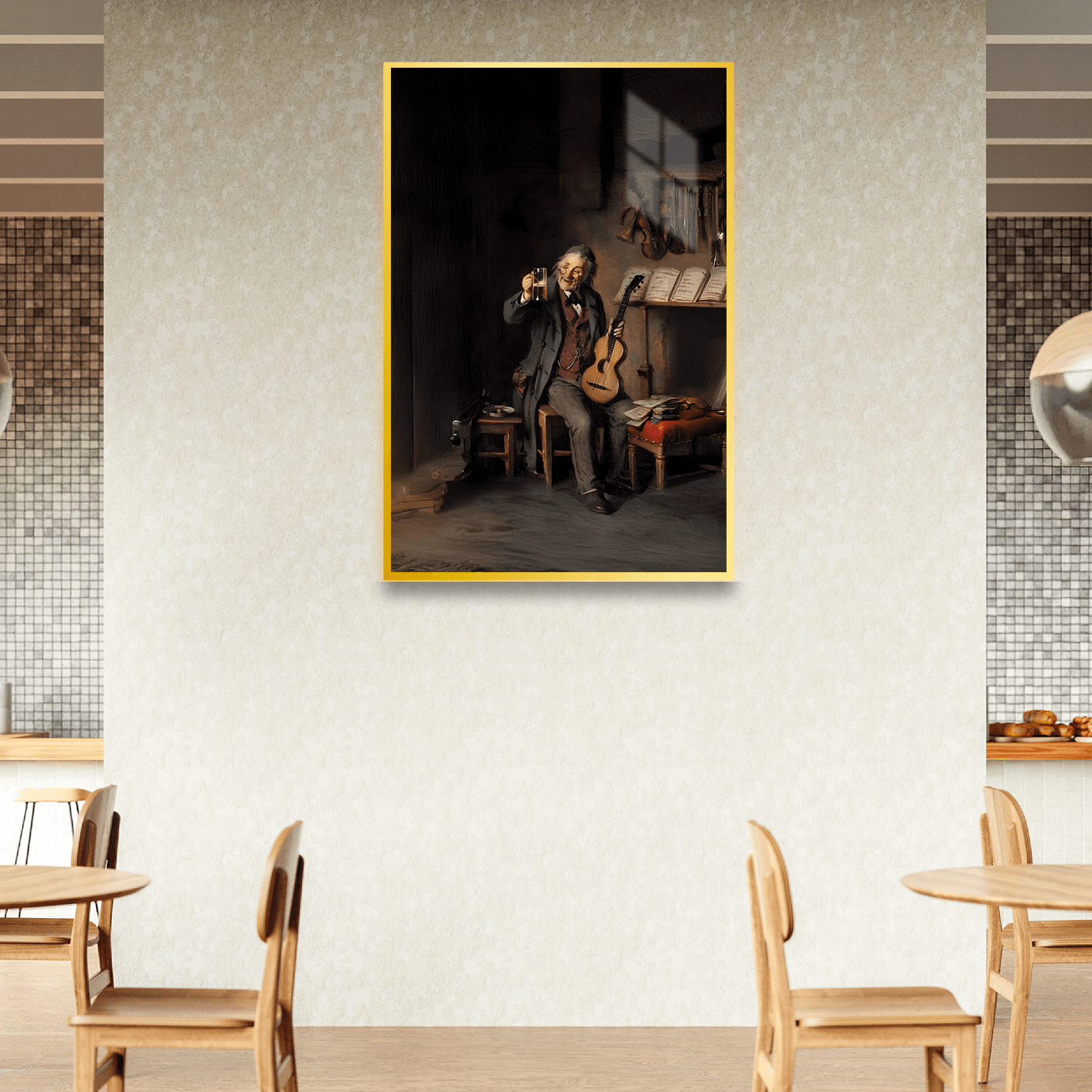 “Köpükteki Melodi”, bar ya da kahve molasına eşlik eden rahatlatıcı bir içecek anını, bar ortamına uygun tablolar arasında keyifli bir görsel formda sunar. Kafelerde sıcaklık, samimiyet ve tarzın birleşimidir.