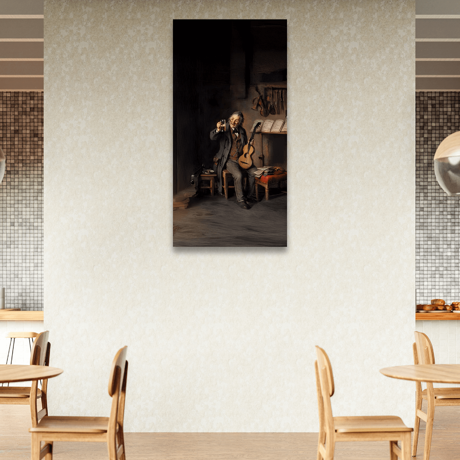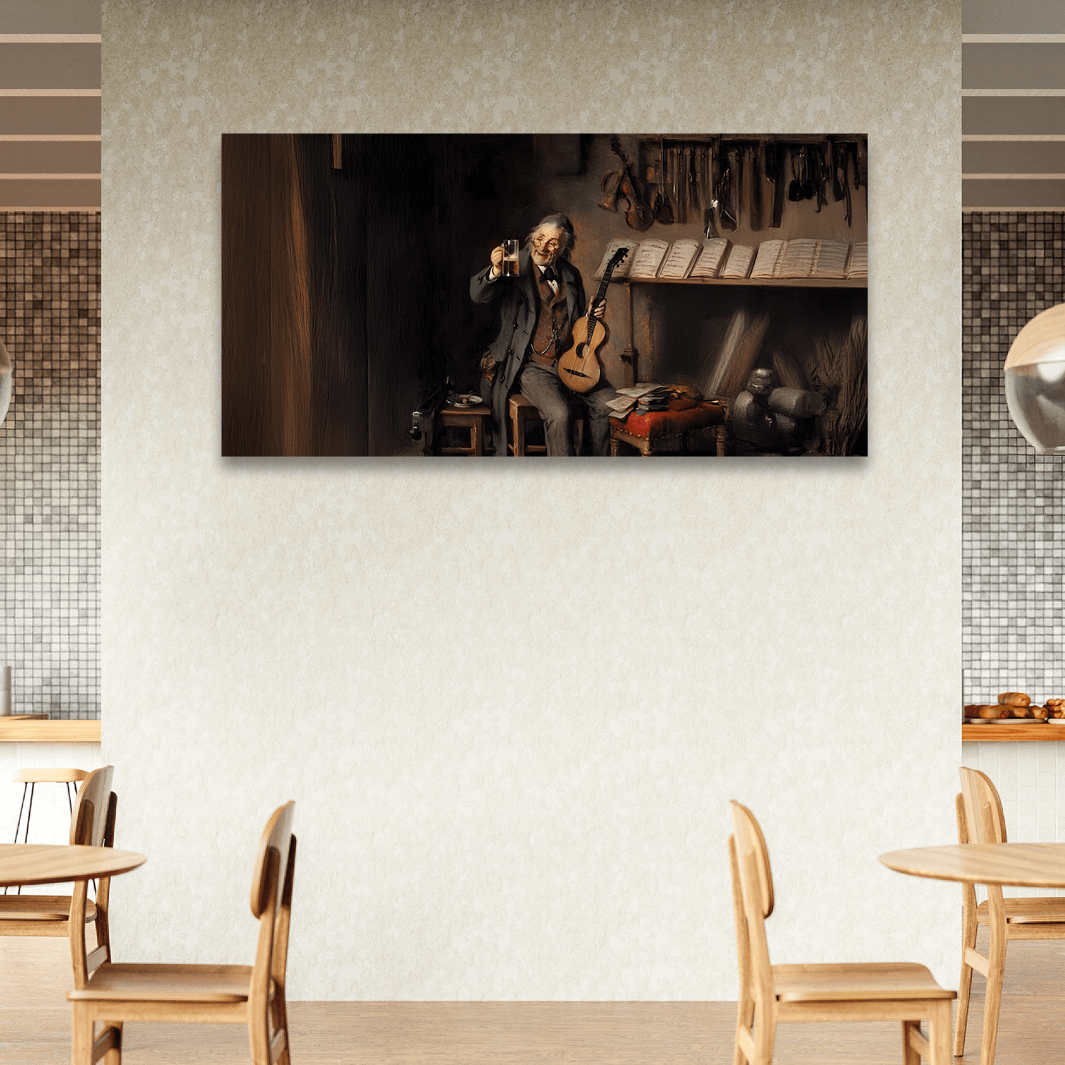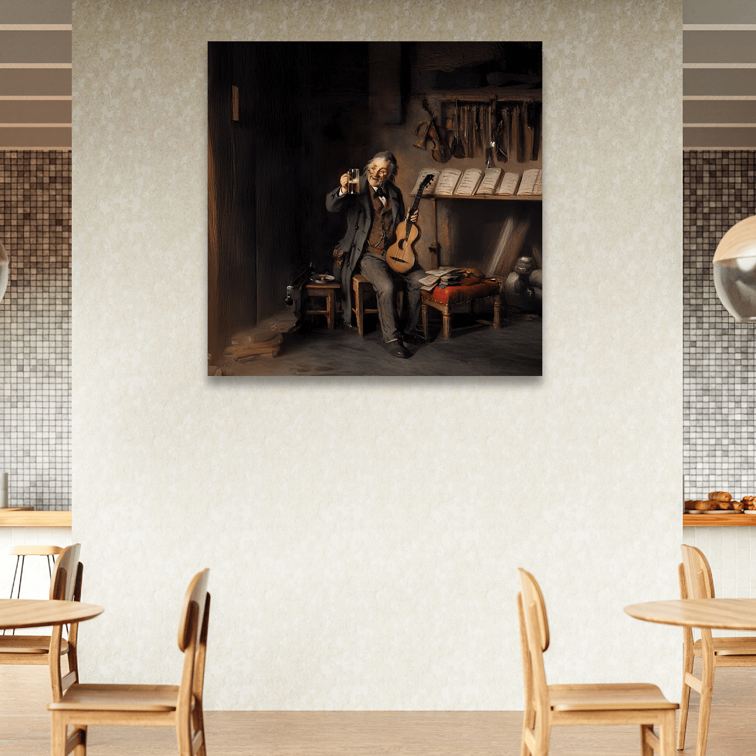 “Köpükteki Melodi”, bar ya da kahve molasına eşlik eden rahatlatıcı bir içecek anını, bar ortamına uygun tablolar arasında keyifli bir görsel formda sunar. Kafelerde sıcaklık, samimiyet ve tarzın birleşimidir.