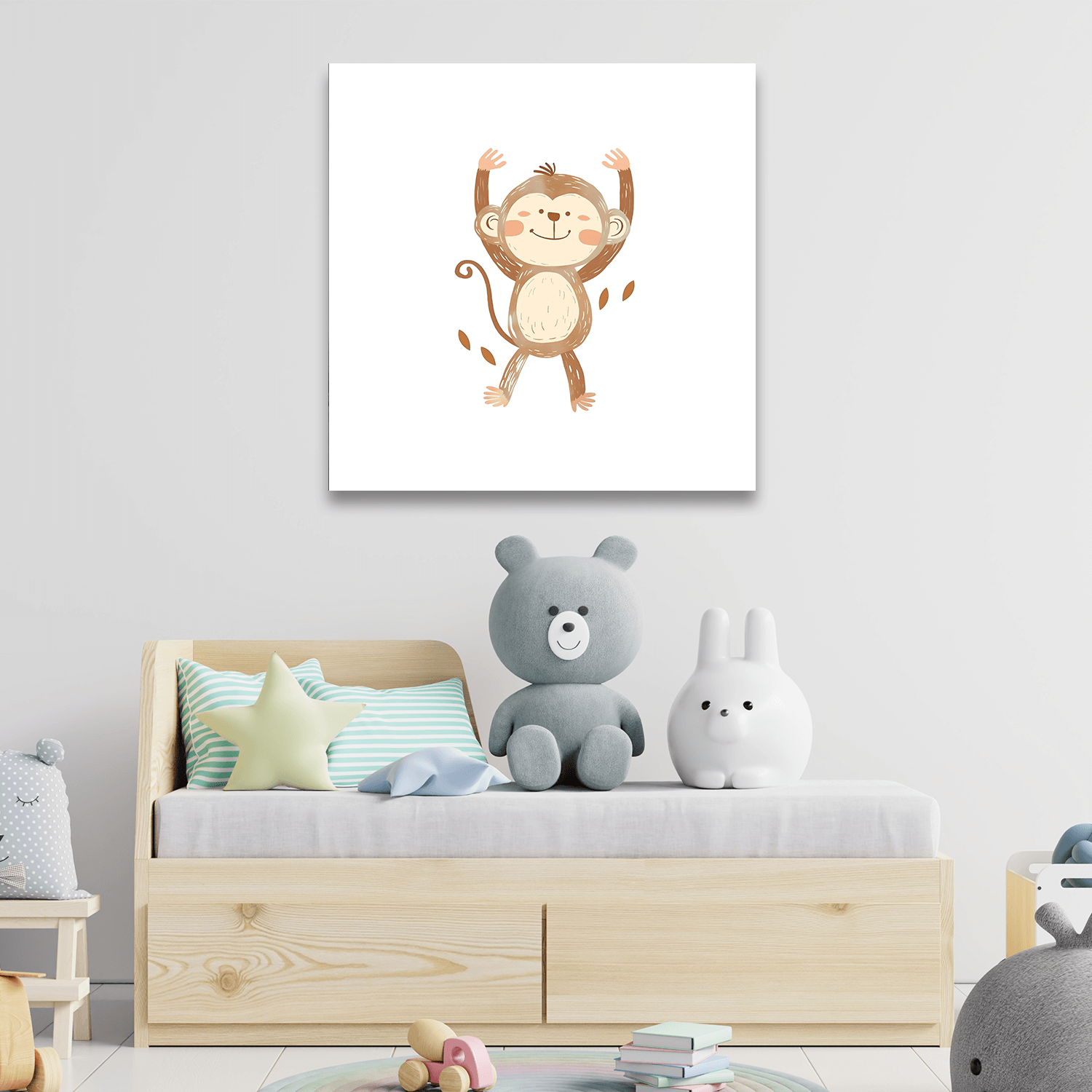 Sky Tablo’nun yüksek baskı kalitesi ile üretilen Neşeli Maymun Tablo, oyun odası tabloları arasında fark yaratan bir parçadır. Eğlenceli detayları ve sade arka planı ile çocukların ilgisini çeken bu eser, aynı zamanda ebeveynler için dekoratif bir çözüm sunar.