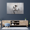 Piyano tuşlarının üzerinde huzurla uyuyan bu kedi, modern duvar tabloları koleksiyonunda şıklık ve sakinliği bir araya getiriyor.