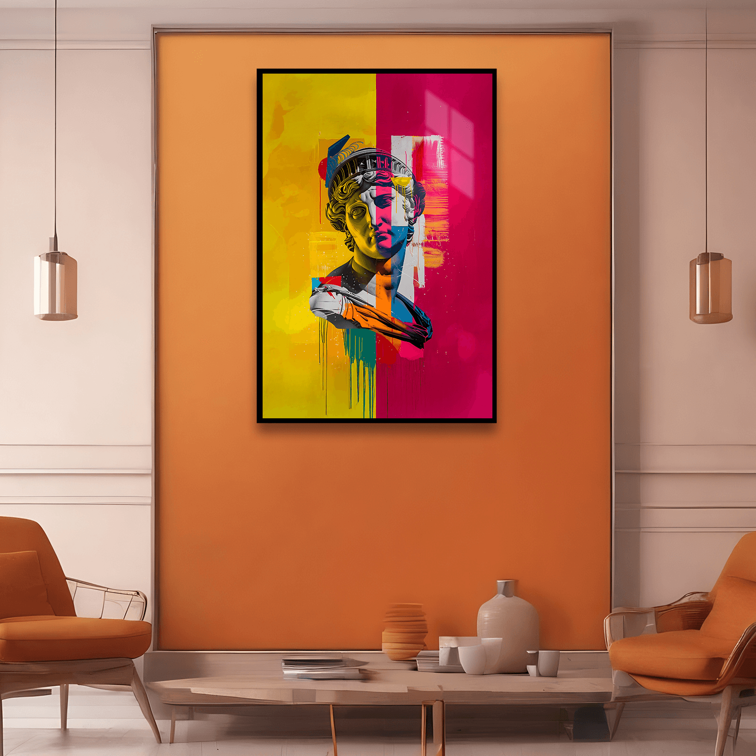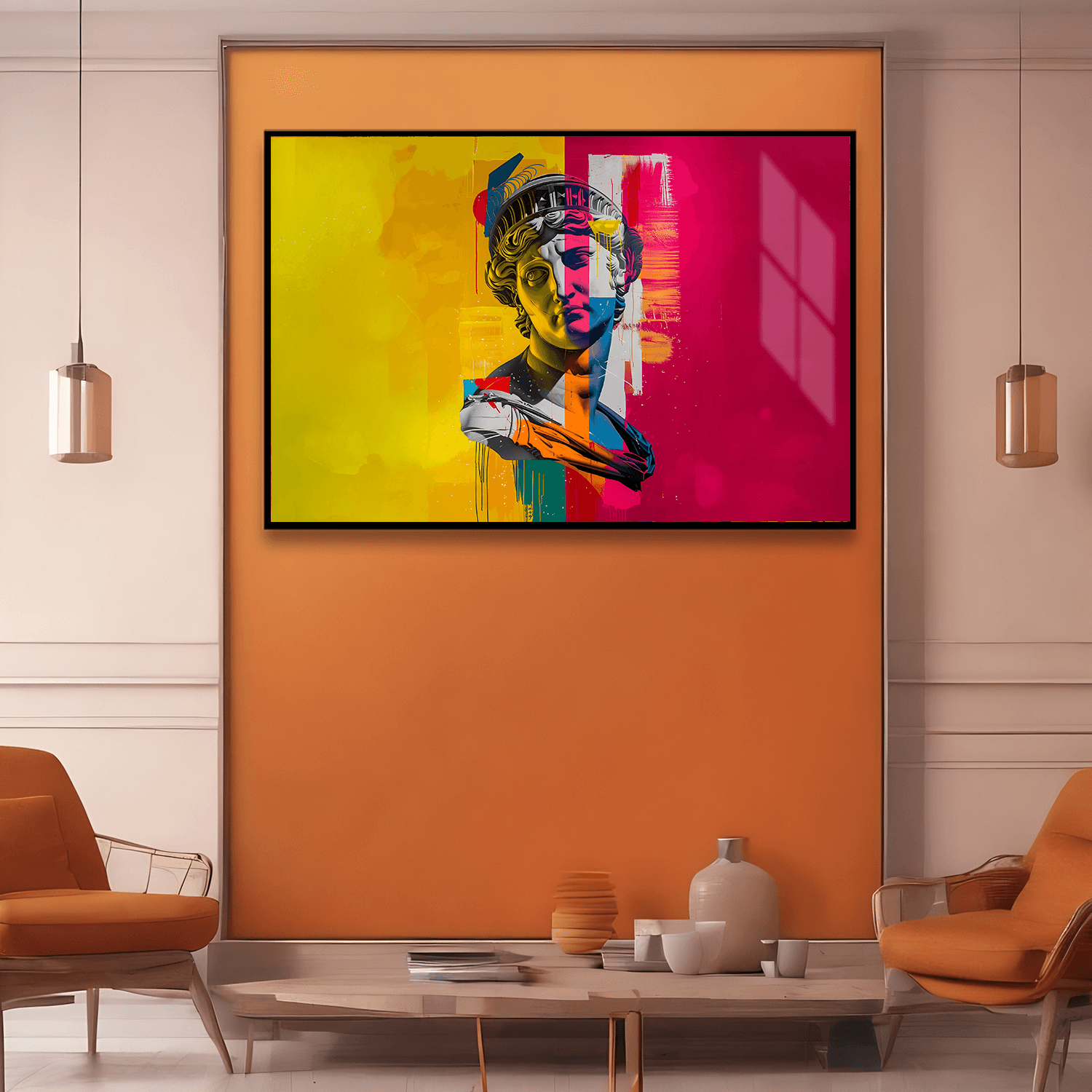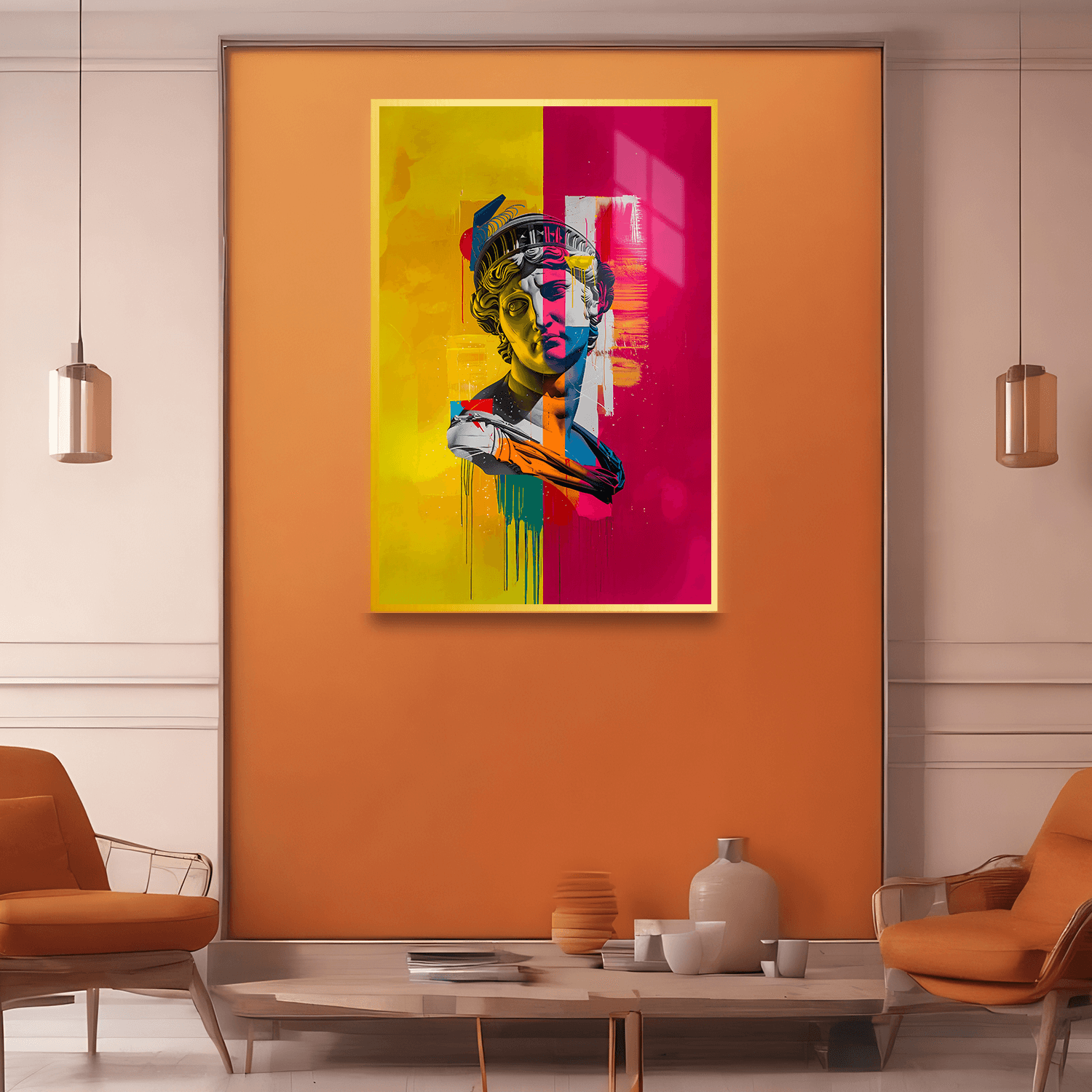 “Renkli Heykel”, klasik imgelerin enerjik bir yorumuyla duvar dekorasyonu için pop kültürden beslenen tablolar arasında fark yaratan güçlü bir seçenektir.