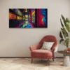Parlak cam yüzey, neon çizgilerin yoğun kontrastını ve detayların etkileyiciliğini artırarak tabloyu cam yüzeyli sanat tabloları kategorisinde çarpıcı bir modern klasik hâline getirir.