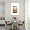 Gülümseten kompozisyonuyla bu eser, mutfak dekorasyonu için servis temalı şık tablolar kategorisinde hem kullanışlı hem sanatsal bir hava yaratır.