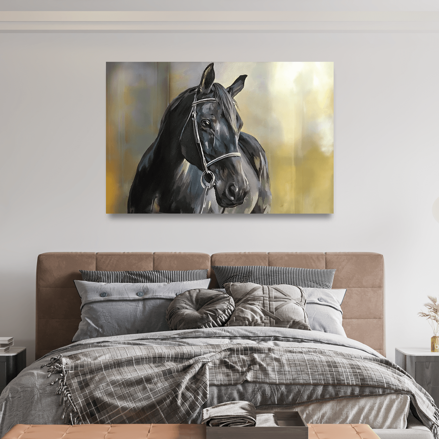 Yırtıcı olmayan ama gözle hissedilen bir güçle işlenen bu figür, at temalı dekoratif tablolar içinde sakin ama etkileyici bir iz bırakır.