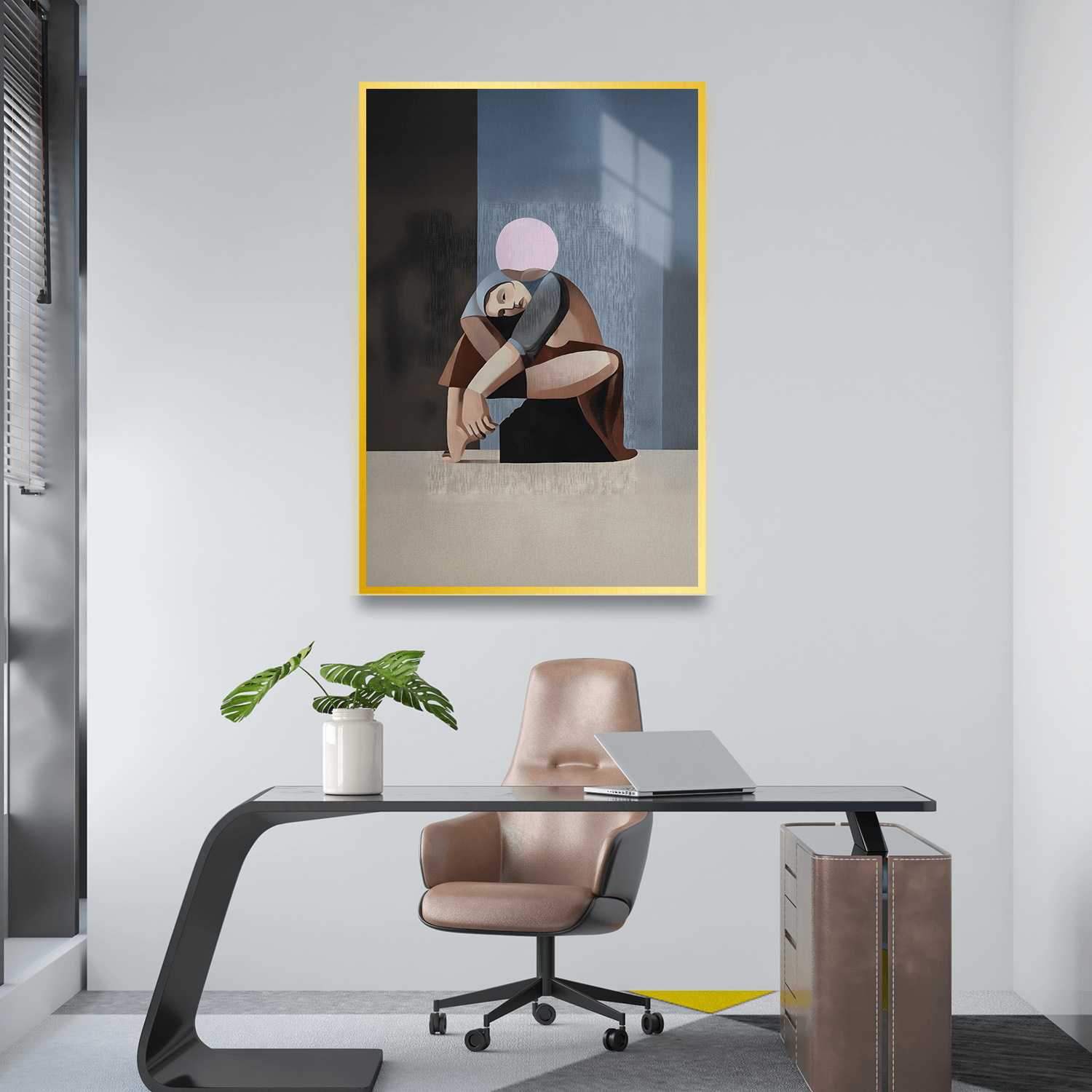 Bu tablo, salon tablosu olarak kullanıldığında modern dekorasyon anlayışını yansıtır ve odanın odak noktası haline gelir. Ofis tablosu olarak sergilendiğinde, çalışanların yaratıcılığını artırarak iş ortamında farklı bir atmosfer oluşturur. Yatak odası tablosu olarak tercih edildiğinde ise, soyut şekillerin sakinleştirici etkisiyle huzurlu bir ortam yaratır.