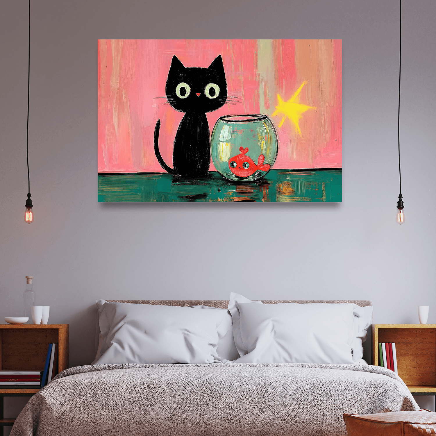 Tatlılığın verdiği dinginlik ile bu eser, yatak odası dekorasyonuna uygun figürlü tablolar arasında dinlendirici ama aynı zamanda eğlenceli bir atmosfer yaratıyor.