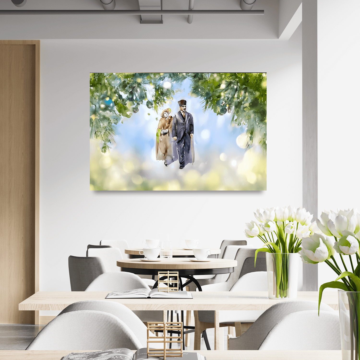 Cumhuriyetin ilke ve değerlerini mekâna yansıtan bu eser, ofis dekorasyonu için anlam yüklü tablolar arasında vizyoner bir atmosfer kurmak isteyenler için birebir.