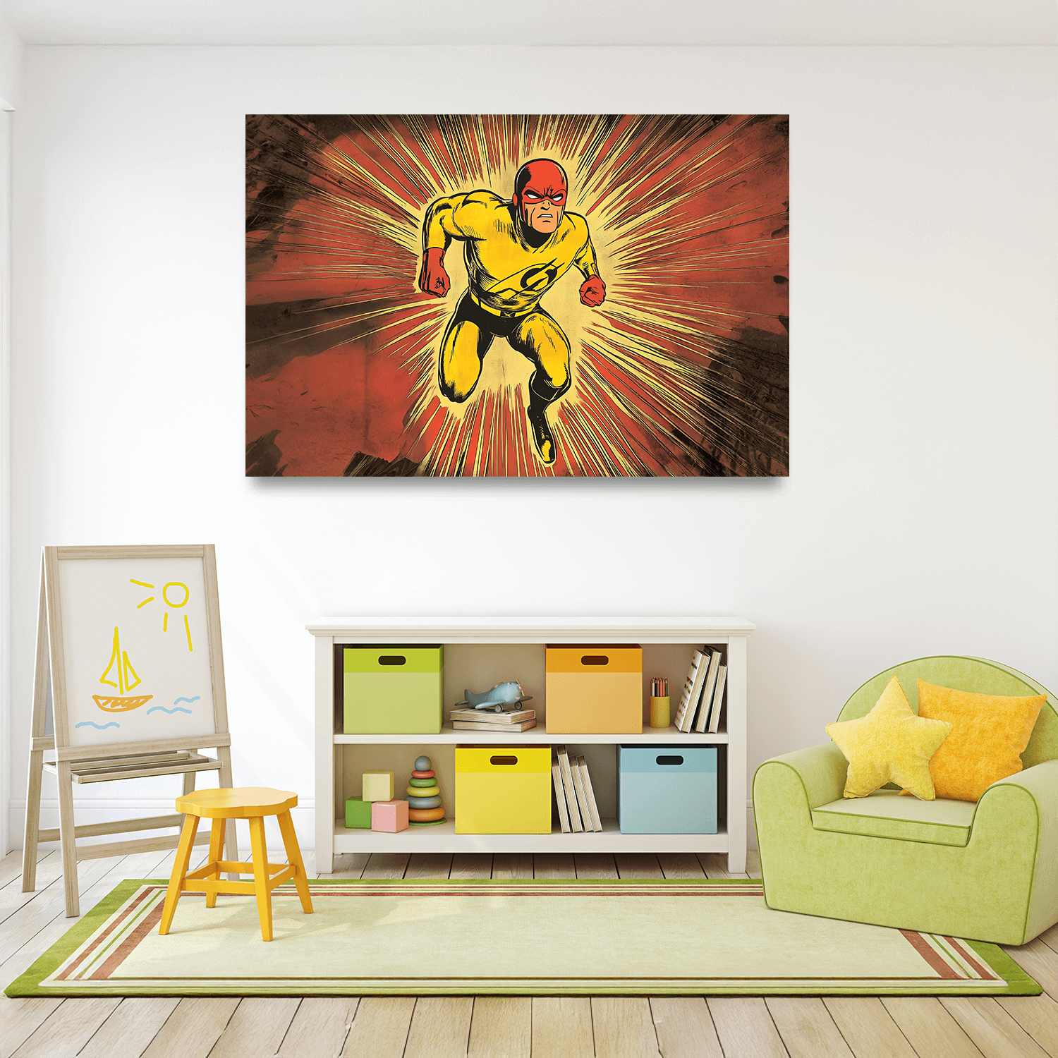 Sarı ve kırmızı tonlarının güçlü kontrastıyla öne çıkan bu tablo, modern salon tabloları kategorisinde cesur bir dekoratif unsur olarak yaşam alanlarınıza hareket katıyor. Güçlü bir odak noktası oluşturmak için ideal bir tercih.