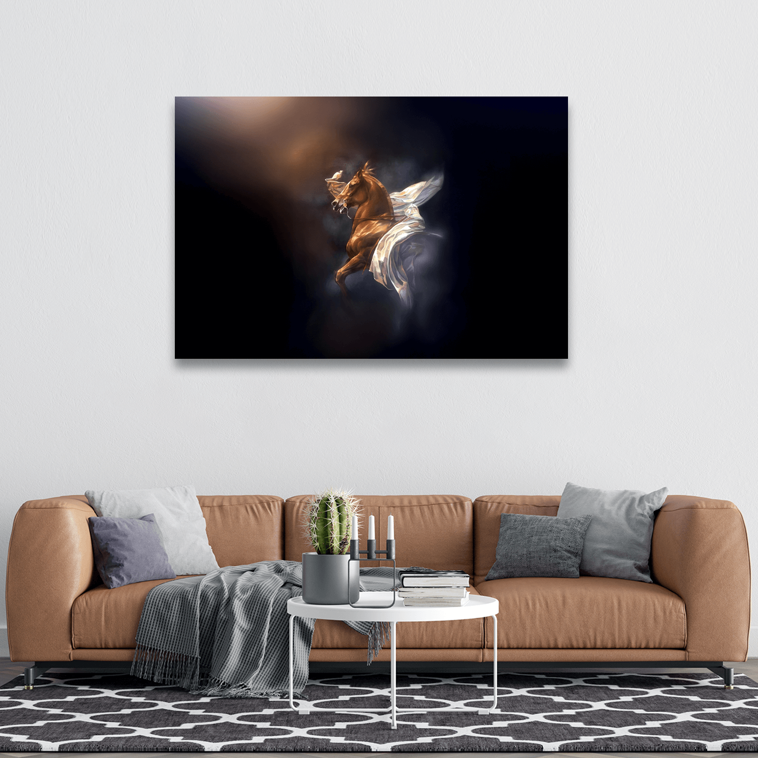 “Ateşin Gölgesi”, güçlü bir atın karanlık siluetini alev tonlarıyla buluşturan etkileyici bir tasarıma sahip. Bu eser, hayvan figürlü dekoratif tablolar koleksiyonunda doğanın enerjisini duvarlarınıza taşıyor.