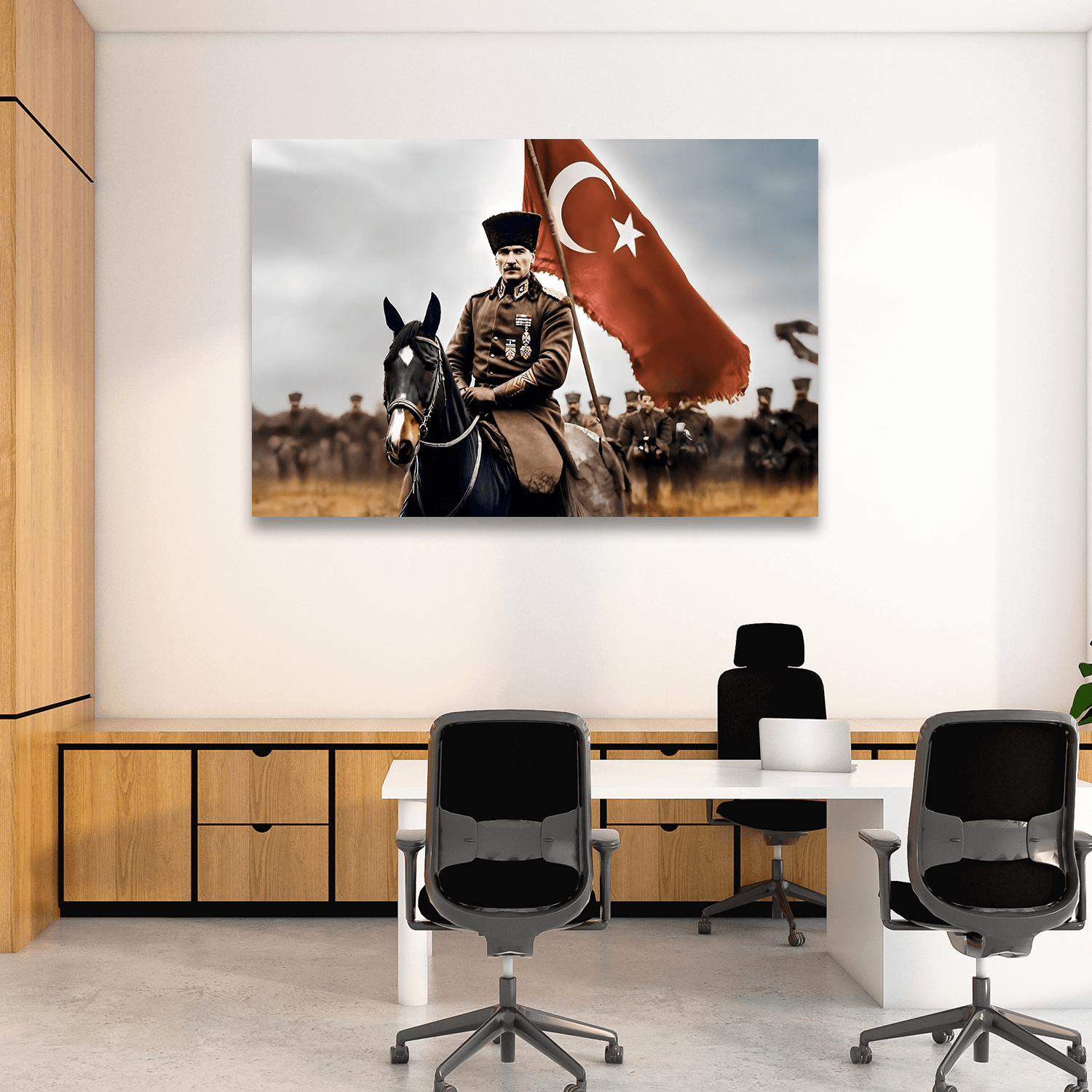 Mat dokunun verdiği yumuşaklıkla birlikte hazırlanan bu eser, kanvas baskılı liderlik temalı tablolar arasında hem nostalji hem saygı duygusunu birlikte taşır.